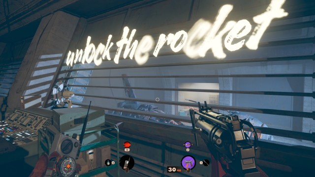 Anyway, press the button on the Mysterious Door and Colt will speak the password. It will open up, and you can check out some of the stuff here. You’ll notice a rocket ship known as the Rakyetoplan (RAK for short). If you check the door to the RAK hangar, you’ll see a note with a numerical code. Again, it might be randomized for other players (mine is 5-2-4).