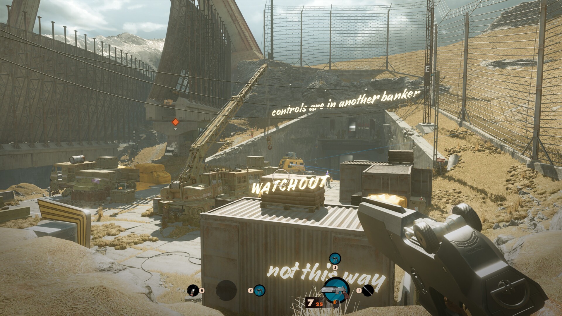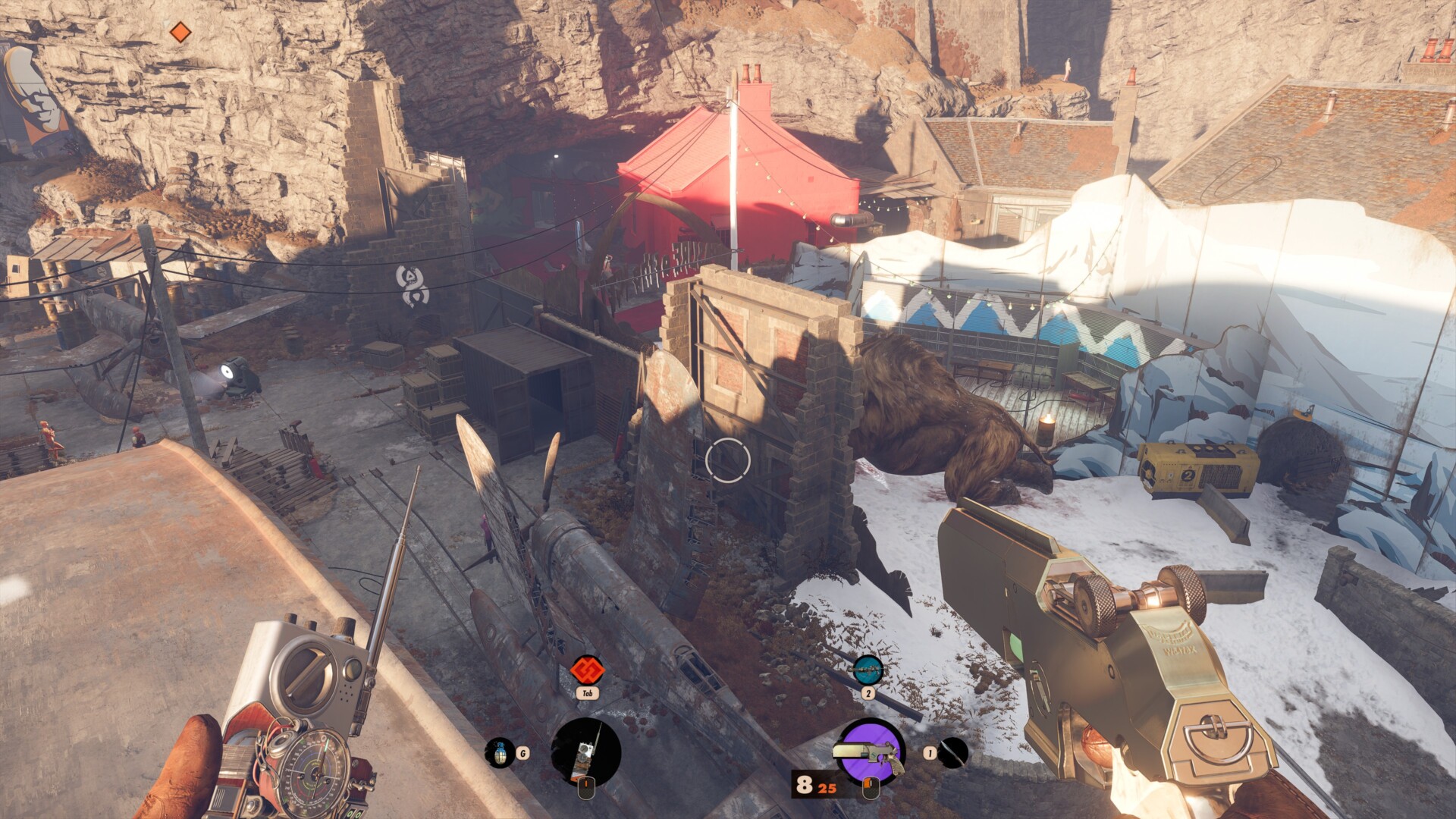 Now, as for the crashes I’ve experienced in Deathloop, there were quite a number of these. The first one was in Updaam at night. The mission had a couple of bosses that I could take out, and Julianna (an assassin) was also hunting me. Certain crashes occurred after I had taken out Julianna. Sometimes I was fighting several mobs, or a grenade just blew up close to my character. Likewise, I should warn you that there’s one specific wolf-masked guard behind the fortress (seen in the image below) who causes a crash if you snipe him. If you experience too many crashes in this specific location/time of day, I suggest exiting the tunnel and ending that cycle. Your next run should go smoothly (that was how things transpired for me).