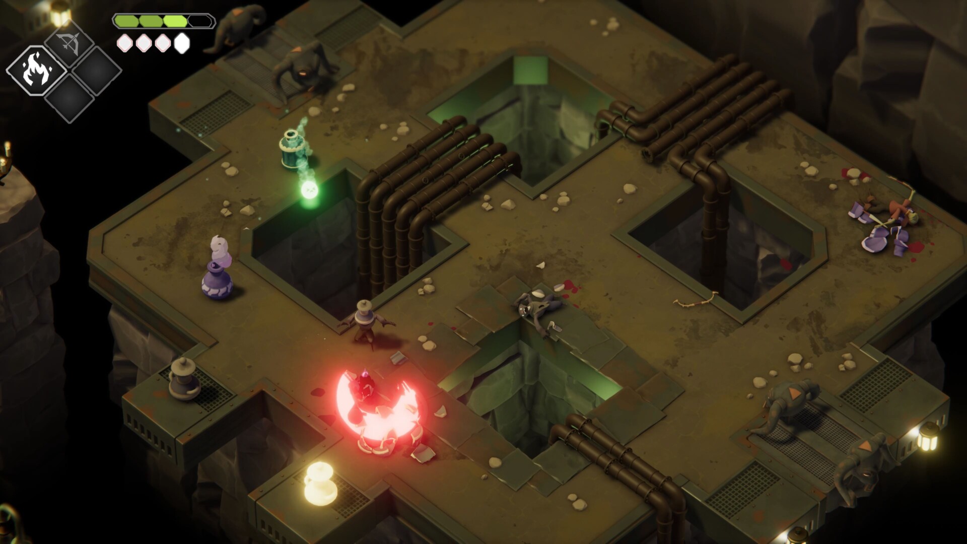Death’s Door’s grim avatar also has magic powers that can fall into use for both combat and puzzle solving. For example, you could fire one of your magic arrows through a flame to light it ablaze or use it to light something else on fire. These can then be chained together to eventually light a torch that opens a previously locked door. On the other side of the coin, these abilities can also be used to hurt or manipulate adversaries. There may even be specific scenarios where mini-bosses are more susceptible to damage from one power over another, so be sure to pay close attention to how enemies respond to your enchanted offensive.