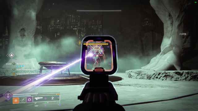 Head down until you see a beam of data surrounded by three Minotaurs that you need to take care of. Interact with the beam of data, and defend your Ghost from a few waves of Vex while they breach the archive security.