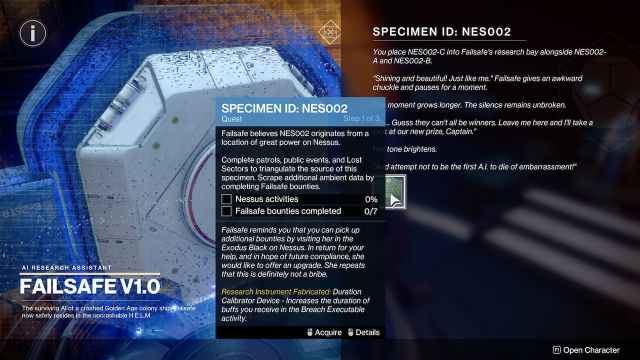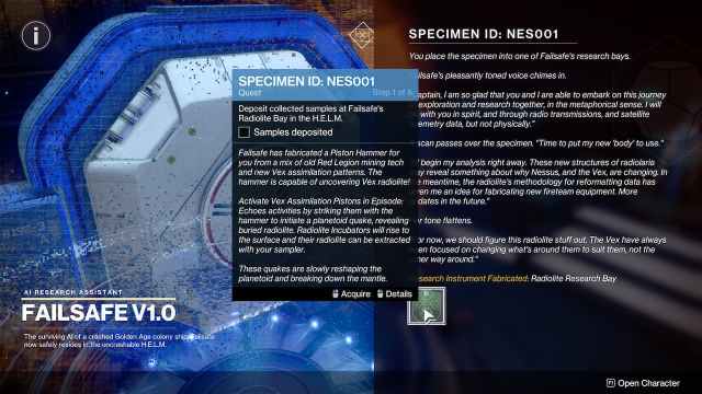 - Steps 4 & 5: Take and discuss the research specimen with Failsafe in Destiny 2