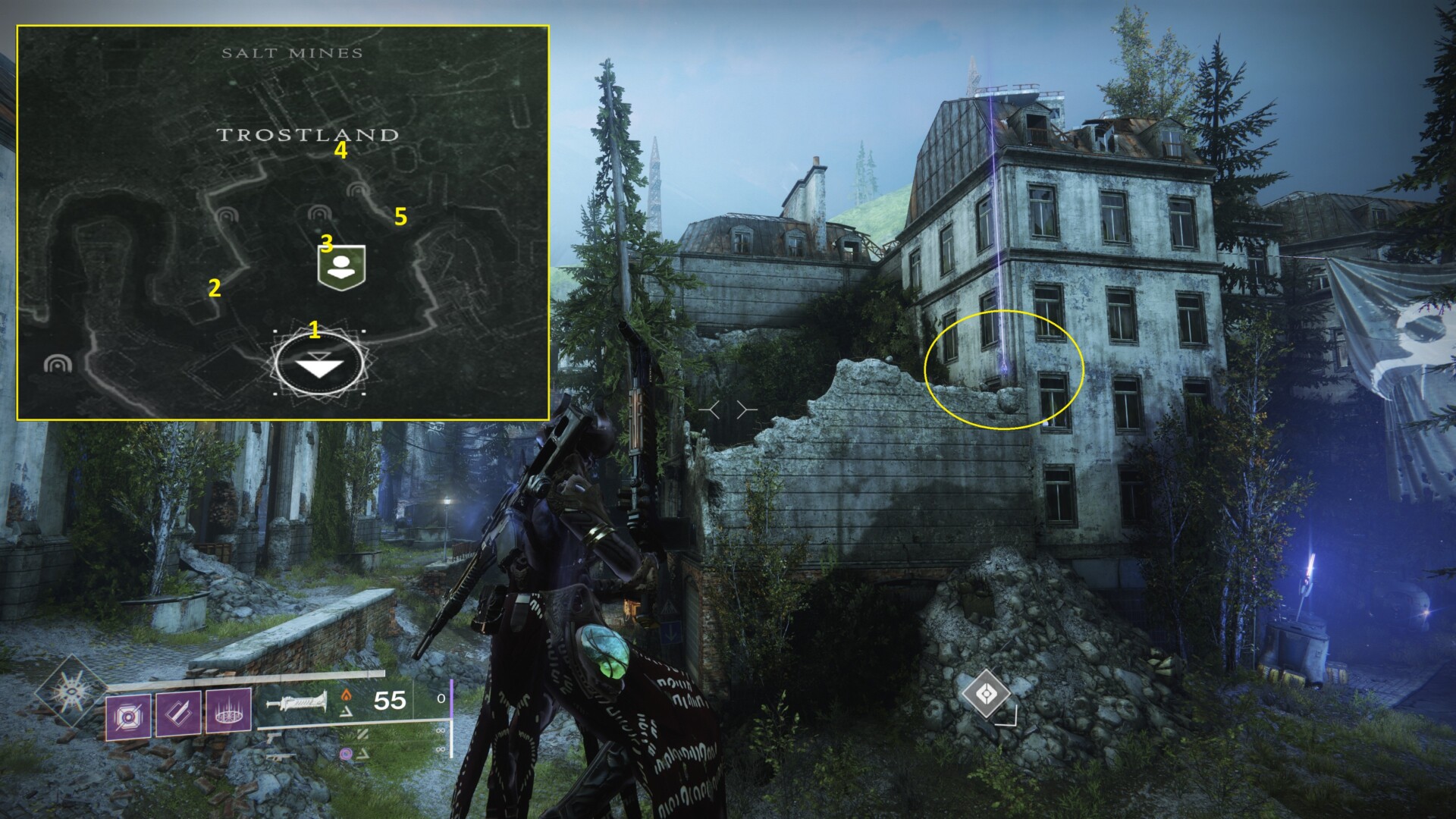 - Near the large central building which has a lost sector (seen in the image below).