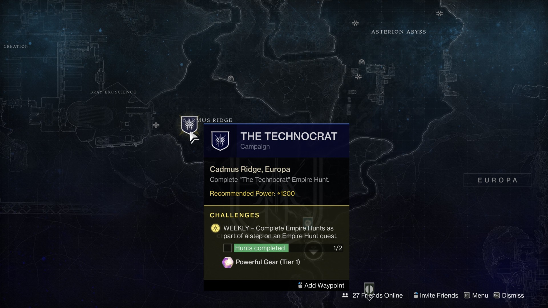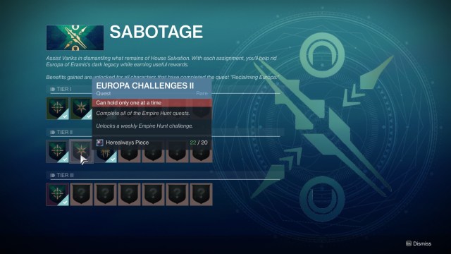 - “Europa Challenges III” – Unlocks the weekly Empire Hunt challenge that rewards a pinnacle drop.