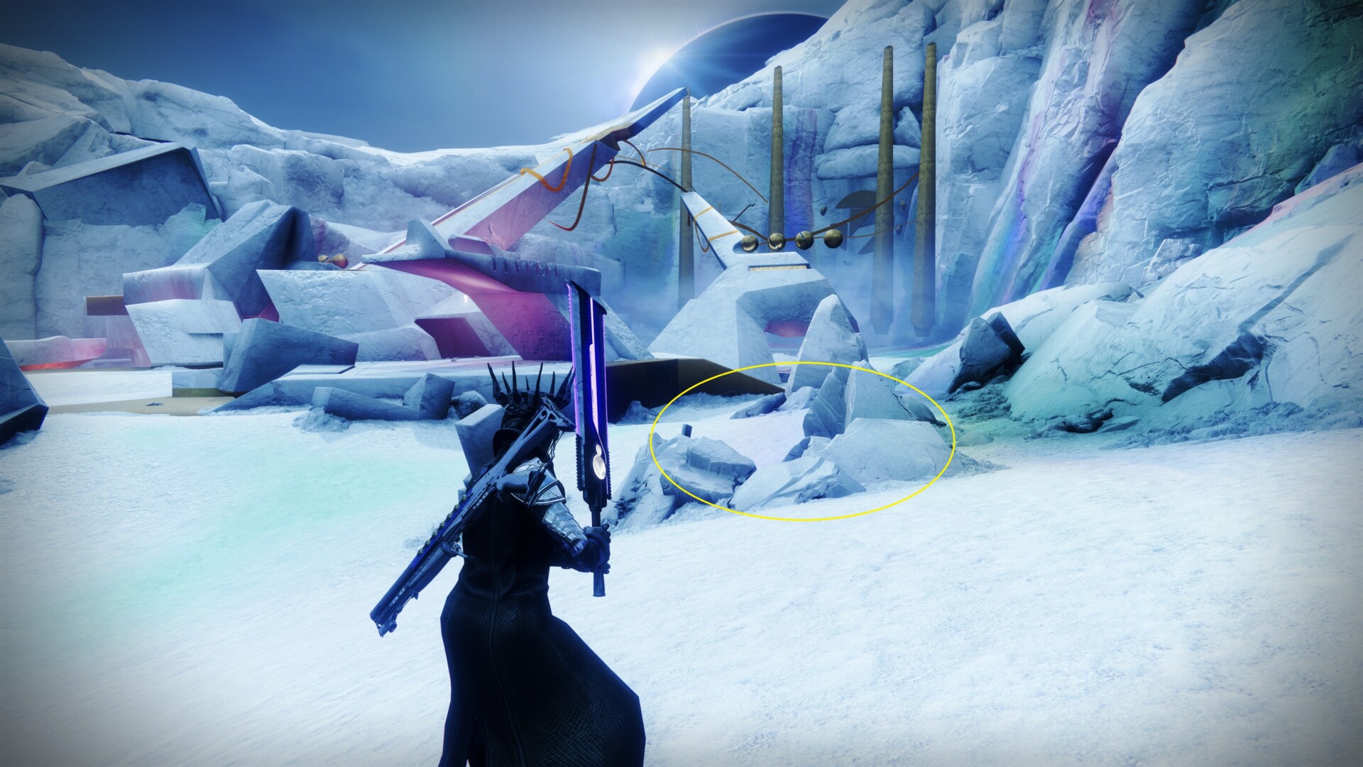 Make your way to the right and take a look at the frozen rocks. You should be able to interact with these if you have the Strange Key. From here, you have to go all the way to the opposite side through a small cavern (it’s marked on your HUD).