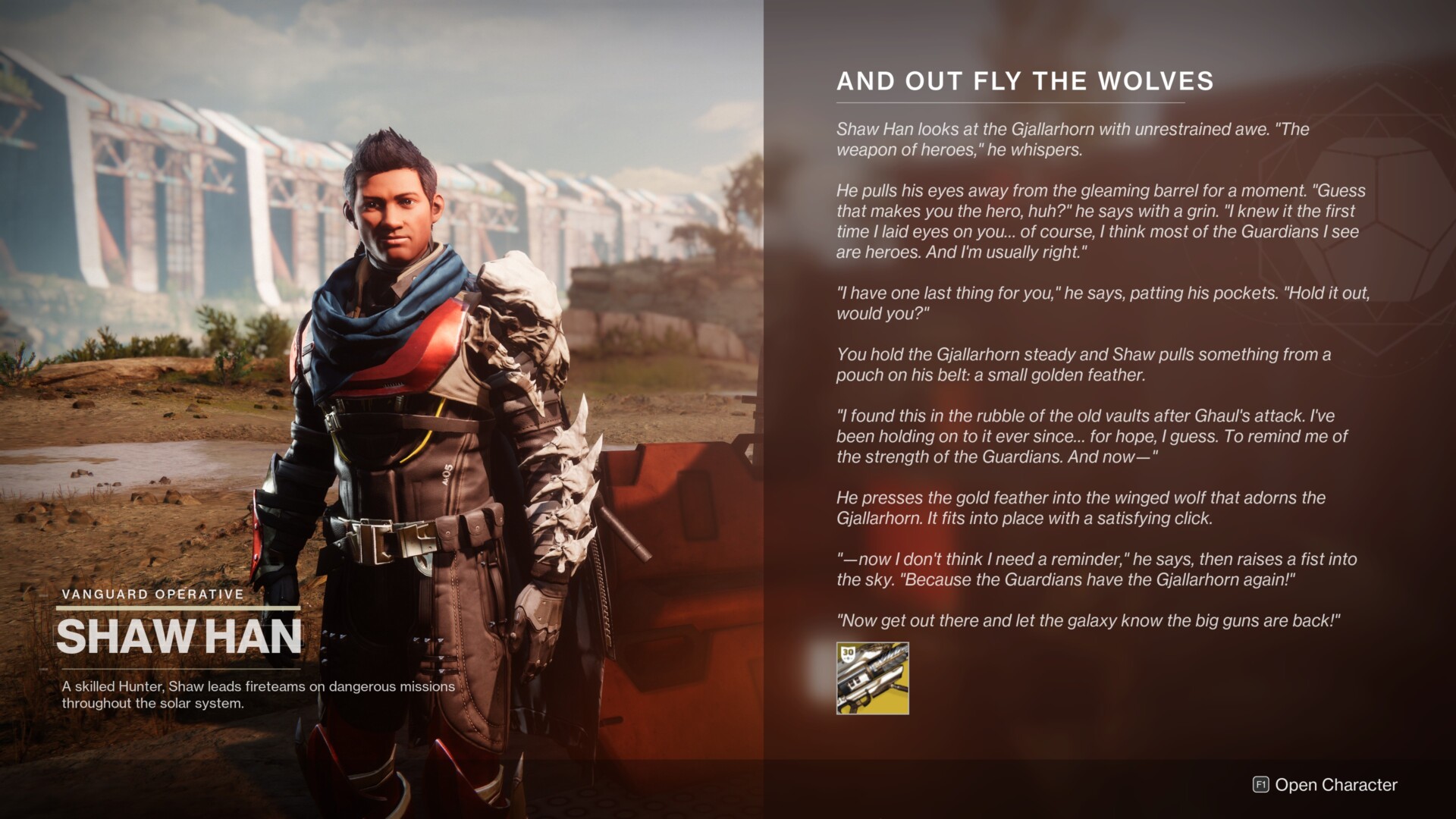 - Talk to Shaw Han in the Cosmodrome.