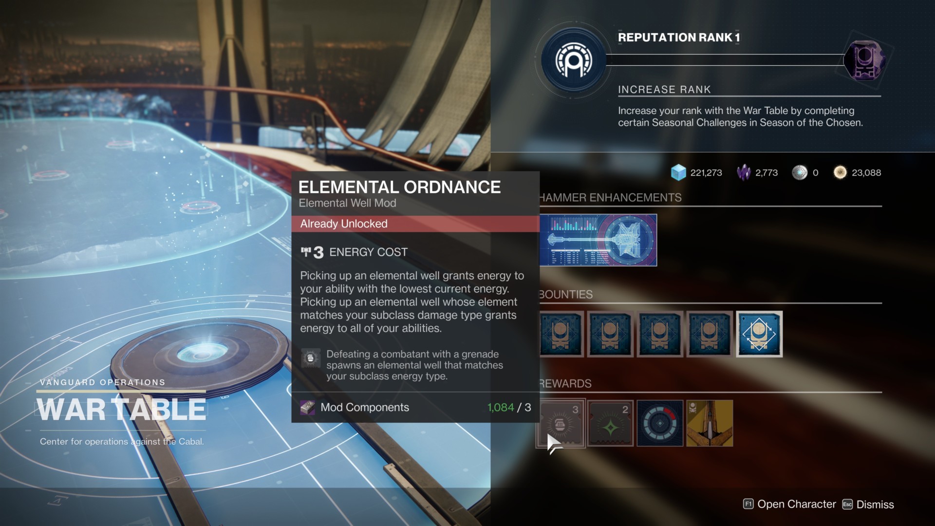 As you complete Seasonal Challenges found on your quest tab, you’ll earn reputation for the War Table. This lets you obtain seasonal engrams as well as Elemental Well mods for armors in Destiny 2: Season of the Chosen. The mechanic entails picking up an elemental well that grants energy (if the elemental well matches your subclass’ damage type, you’ll gain energy for all abilities).