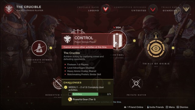 A more guaranteed method is by completing Weekly Ritual Challenges. By participating in certain Crucible game modes, Vanguard Strikes/Nightfalls, or Gambit Matches, you’ll progress in completing the Weekly Ritual Challenge. Completing these rewards you with an Exotic Engram. You can get up to three Exotics with this method and get a much better chance to fill out your Collection too. So if you’re after The Bombardiers in Destiny 2 this will be your best bet to acquiring it.
