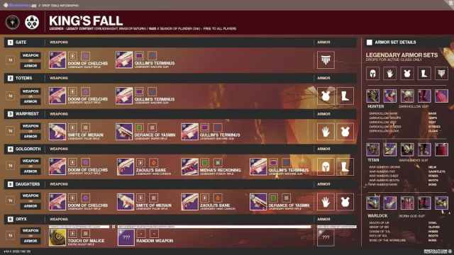 As you can see, there are a lot of weapons and armor pieces you can collect by playing the King’s Fall raid. Just be sure to communicate effectively with your fireteam and defeat every single encounter boss so that you can collect every single reward in the raid!