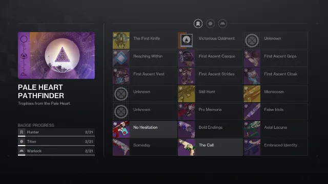 To earn the Pale Heart Pathfinder Triumph in Destiny 2, you need to collect every item in the Pale Heart Pathfinder Collection Badge. “Trophies from the Pale Heart” refers to the collection of The Final Shape gear needed to earn the Badge.