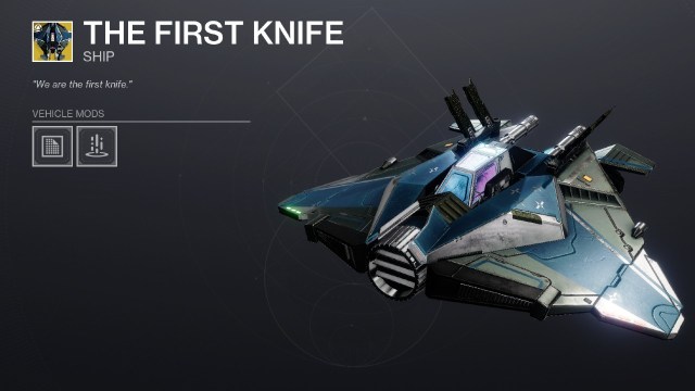 The First Knife is an Exotic Ship unlocked by completing the Paracausal Geometries Triumph. Once the entire Alone in the Dark questline has been completed, Guardians can unlock Paranormal Activities, which appear on the Pale Heart’s map.