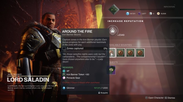 It’s the first Iron Banner week in Destiny 2‘s Season of Arrivals. Go ahead and visit Lord Saladin in the Tower for your weekly bounties (that drop pinnacle rewards) and the “Old Reliables” quest (which gives reprised weapons). Here’s our mini-guide to help you out.