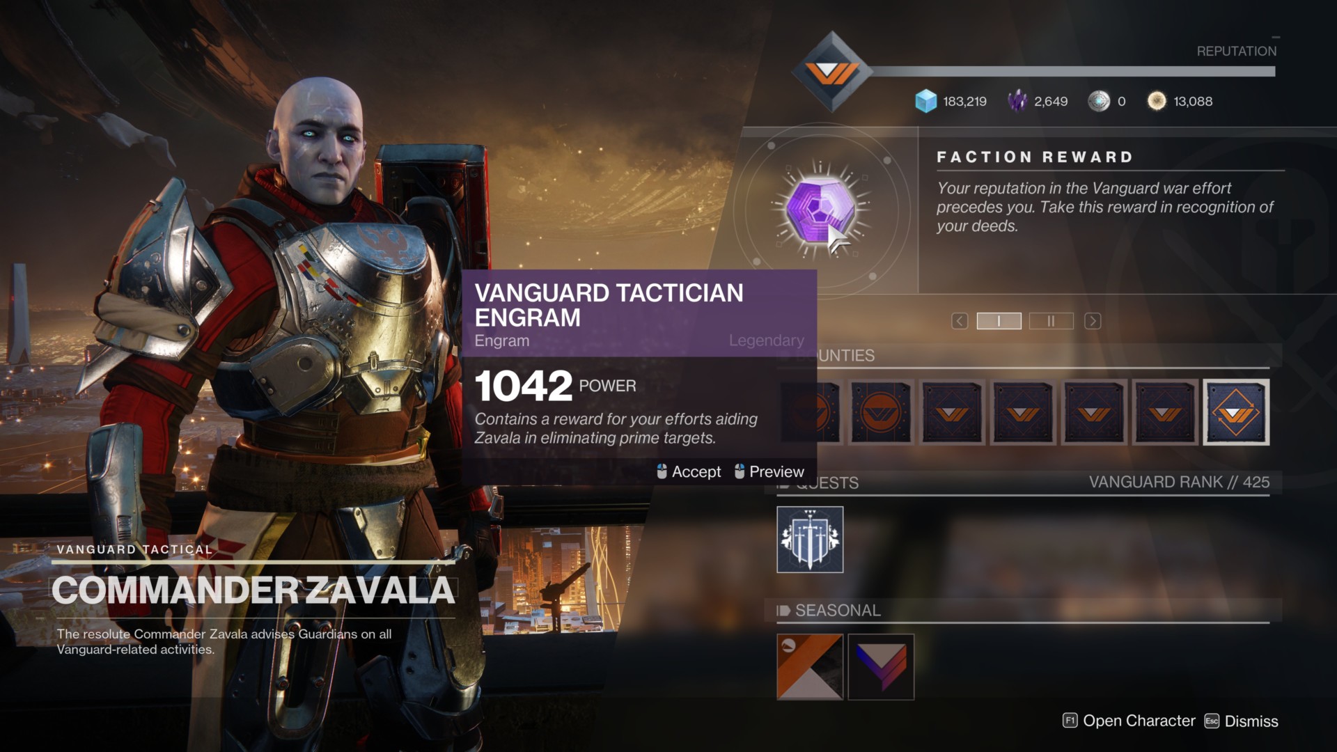 - 8x bounties completed for Zavala, Shaxx, and Banshee