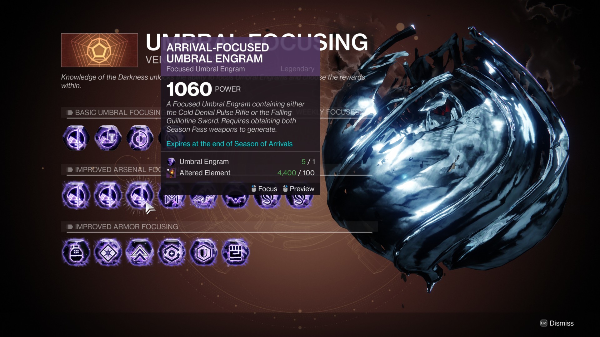 - Choosing the Armor-focused Umbral Engram selection.
