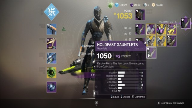 Given that the Prismatic Recaster’s Umbral Engrams focusing mechanic gives on-level drops, I’m able to get items that are also at the 1,060 PL hard cap. Now is a good time to collect some infusion fodder.