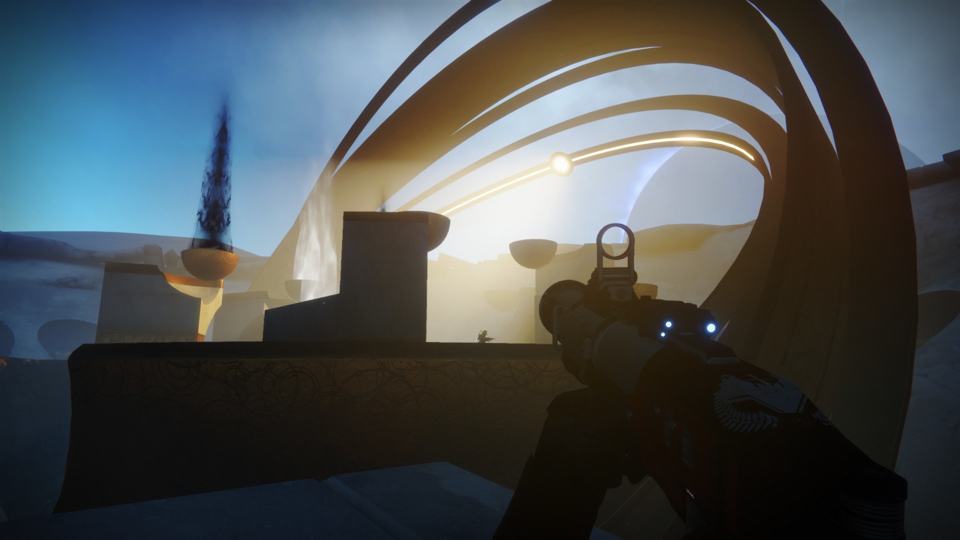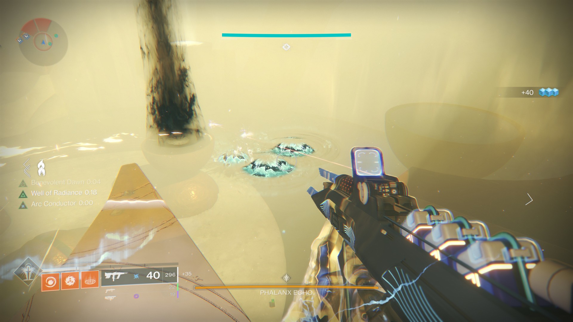 The same concepts from The Prophecy’s opening encounter will still apply in the first boss fight. However, this time, the area will have four pedestals. The colors can be random (so you can get 2x light + 2x dark, or 3x dark + 1x light, and so on). You’ll also notice that the Phalanx Echo boss is immune. The only way to break its shield is to cleanse all four pedestals.