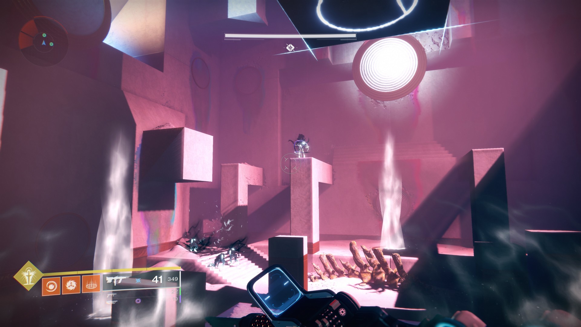 The encounter takes place inside a cube-like structure. Okay, fine, it’s a Hexahedron, but we’re all fans of the movie Cube anyway. The goal here is to “twist” and “turn” the insides of the room while following Toland the Shattered — that “spirit orb thingy” that’s floating in mid-air.
