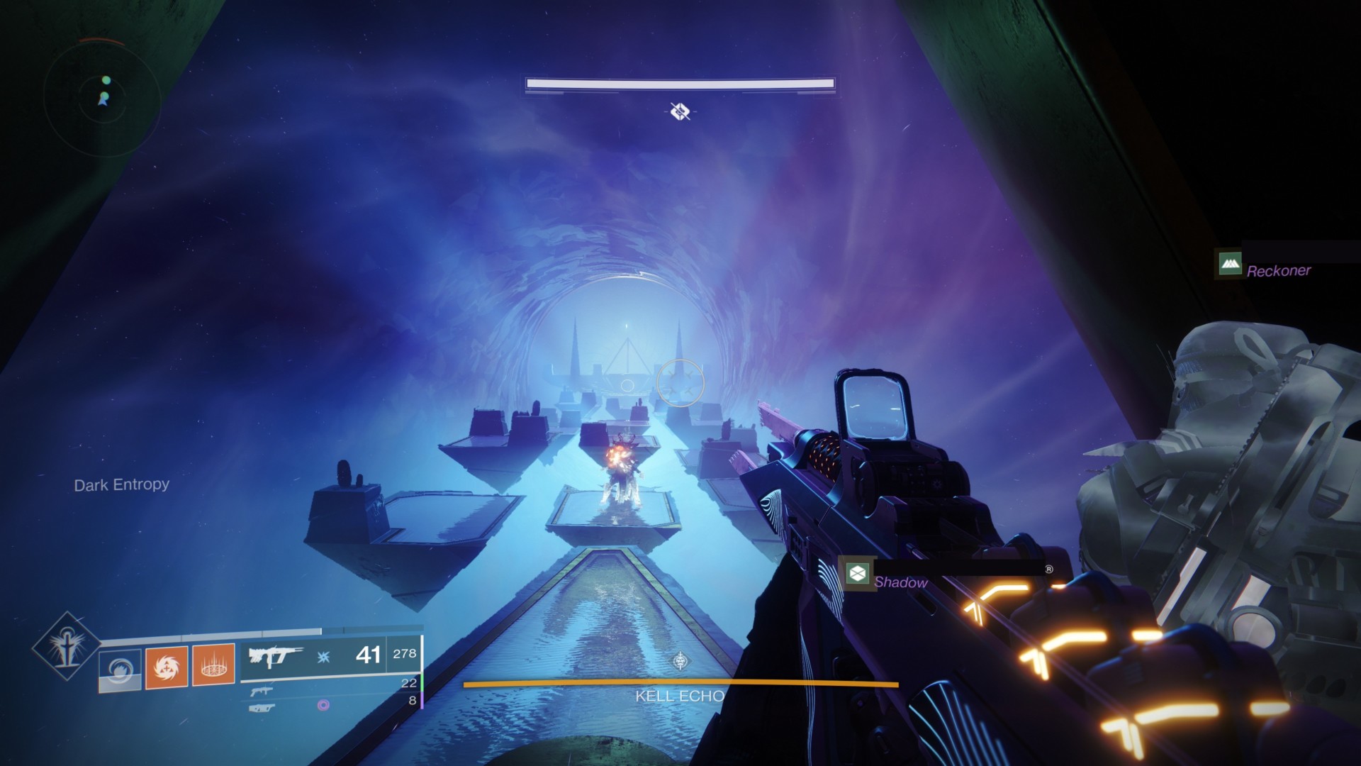 You’ll also notice a debuff at the bottom-left corner of your screen called “Dark Entropy.” The Echo Kell will continue moving backward until it reaches the exit, and you must keep following it while doing DPS.