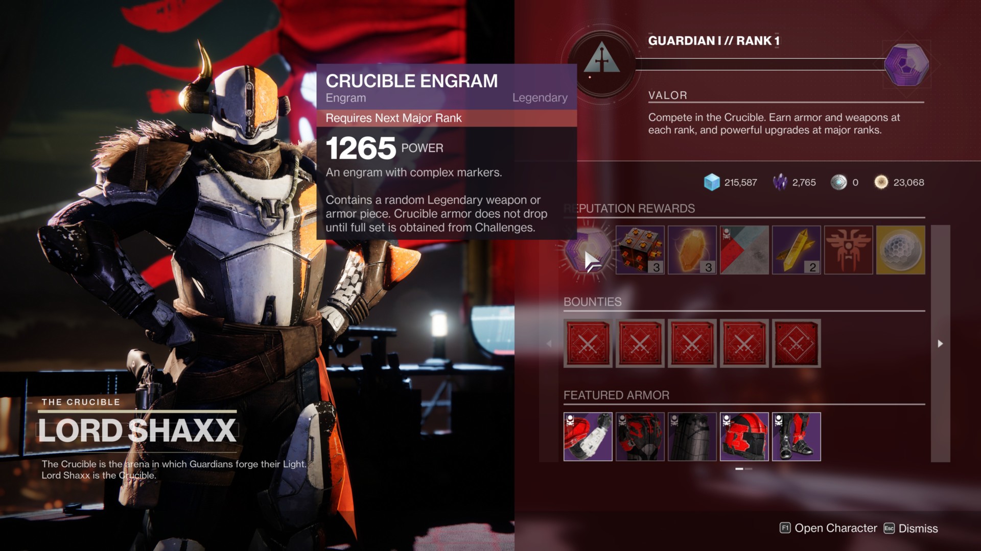- Crucible Valor rank-ups