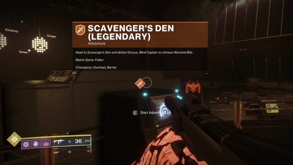 Anyway, you’ll probably notice that there’s a console that lets you start Scavenger’s Den. That’s the lost sector for today and, presumably, there will be other lost sectors each daily reset. The modifiers for today’s Scavenger’s Den legendary lost sector are: