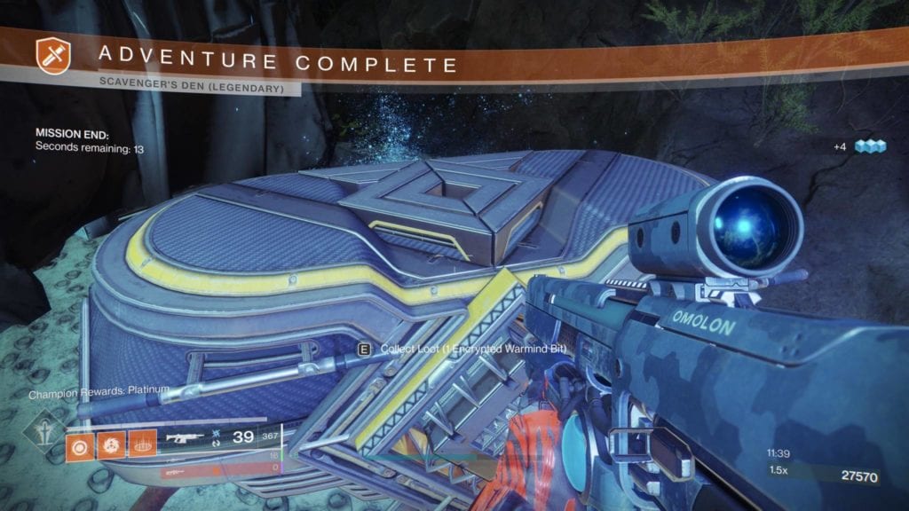 In any case, the end of this short romp, you can open the chest for a measly 10 Warmind Bits; Encrypted Warmind Bits have a low chance of dropping too. If you have these encrypted currencies, you can also open the additional Seraph cache next to it for two extra Warmind Bits and a random legendary item. How nice.