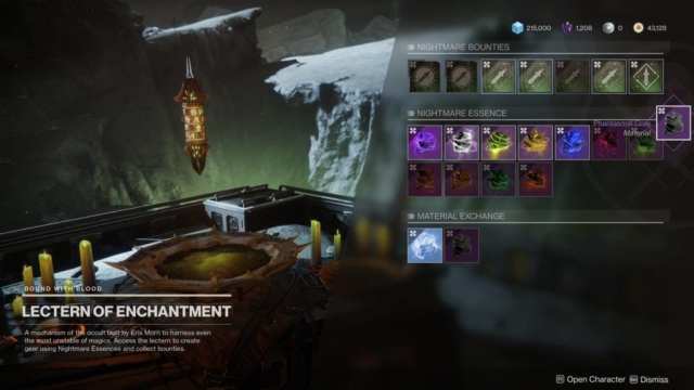 Initially, you’ll find Nightmare Essence quests as you do missions or activities on the moon. After obtaining them in your Quests tab, they’ll be available via the Lectern of Enchantment should you wish to pick up the same reward later on.
