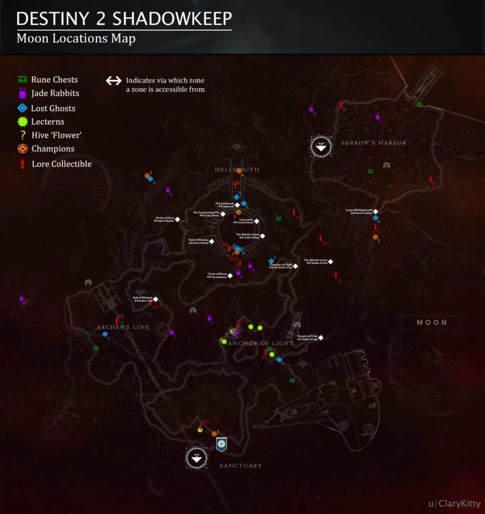 If you haven’t memorized the half a dozen areas on the moon (I don’t blame you because it’s a gigantic destination), you can refer to the map above from Redditor ClaryKitty. All credits go to that awesome fella.