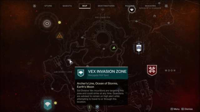 At the same time, mousing over to the moon’s map tells you that the Vex Offensive activity is, indeed, available. However, you need to complete the “Eyes on the Moon” quest first. It’s not even in your Quest tab because it’s the second part of the quest chain after “Vex Invasion.”