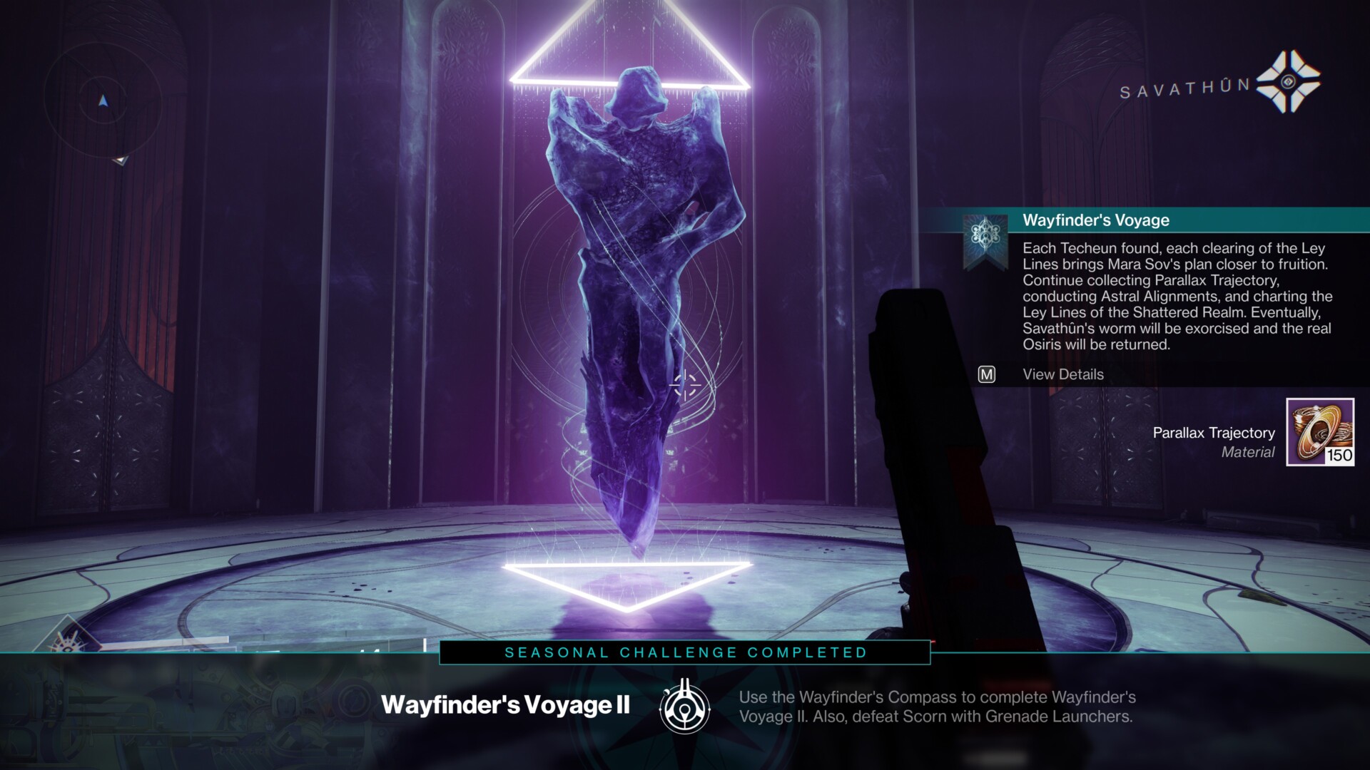 Anyway, this completes this week’s questline. If you managed to kill 100 Scorn with grenade launchers, you’d also be done with Wayfinder’s Voyage II (and you’ll receive some EXP for the terminal).