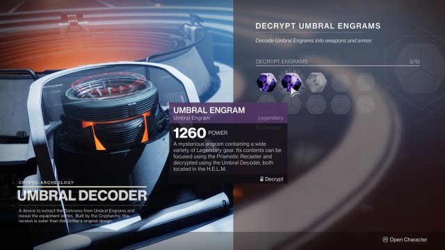 You'll be able to focus Umbral Engrams via the Prismatic Recaster in Destiny 2: Season of the Chosen. Here's our guide.