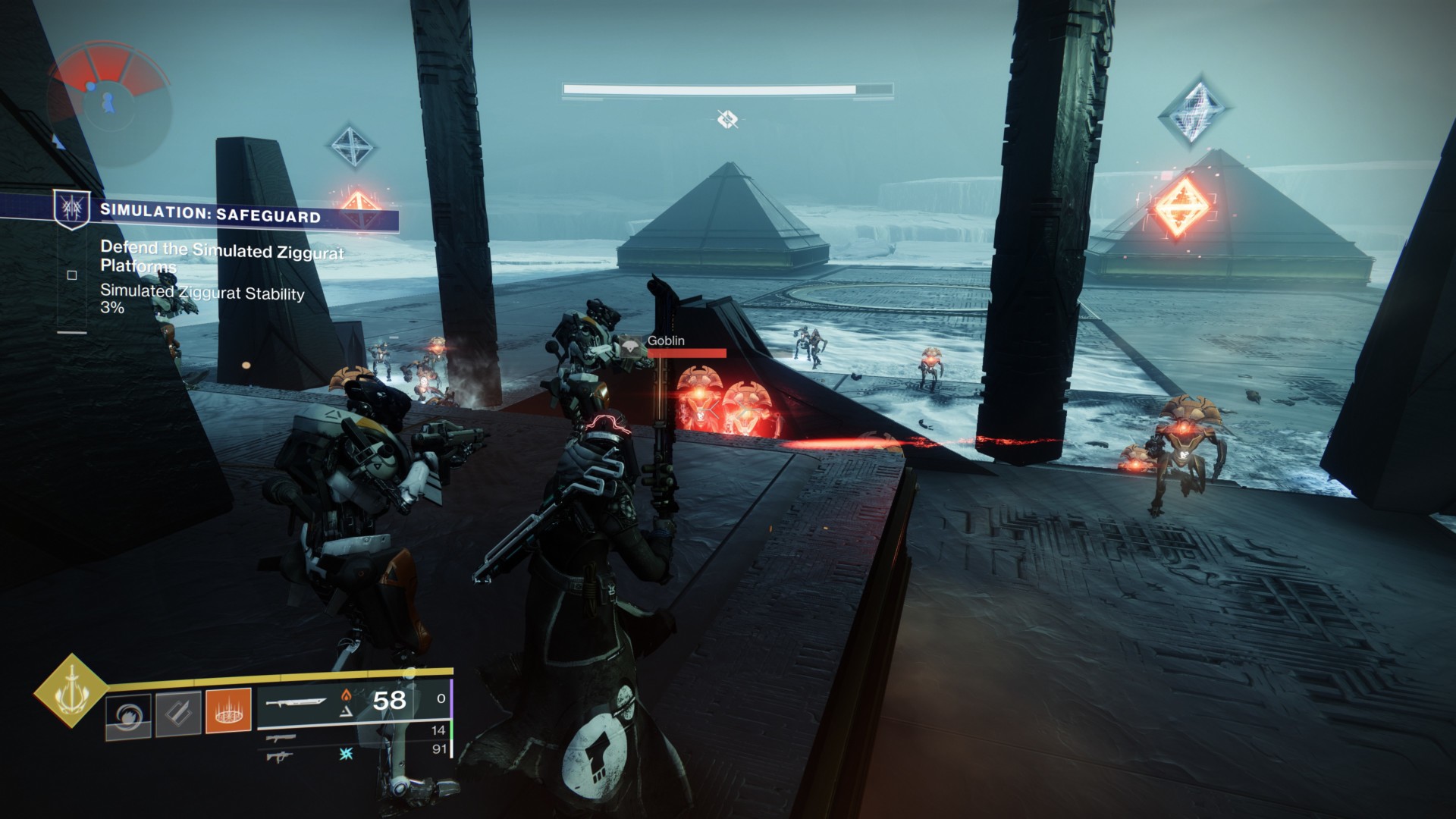 Your goal here is to “safeguard” the two sides of the map. It’s sort of like Destiny 2‘s version of tower defense. The platforms here have a few Braytech bots, but the Vex will overrun them if you don’t help out. You’ll also spot the percentage of that platform’s health, so make sure to eliminate the hostiles so it doesn’t reach zero.