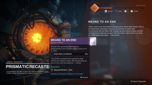 Destiny 2: Season of Arrivals‘ third week will have a slightly different take on the Means to an End quest that you pick up from the Prismatic Recaster. Of course, you still need to head to Io’s Lost Oasis zone to do a couple of Contact public events.