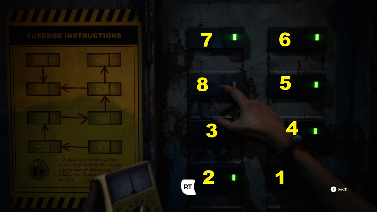 There are three fusebox puzzles in The Devil in Me. Only Jamie is the one that can solve them since she has the multimeter gadget. The process is actually fairly simple. You just need to follow the arrows in the diagram to see which switches to press in the correct order. If ever two arrows lead to the same segment, that means others need to be lit before you click on that.