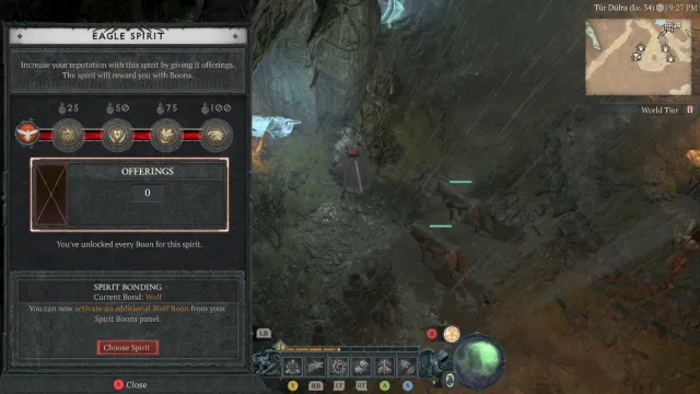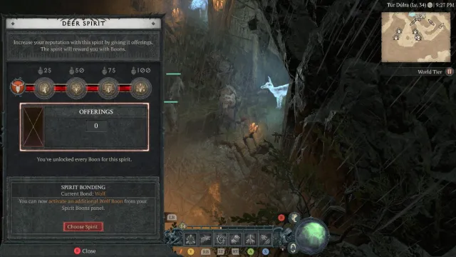 To unlock Spirit Boons in Diablo 4, your Druid must be level 15 and have conquered the Túr Dúlra Stronghold in Scosglen. We aren’t just handed our specialization system, unlike some other classes. Túr Dúlra is tough to defeat at lower levels, but we highly recommend diverting the beaten path and claiming it as soon as possible.