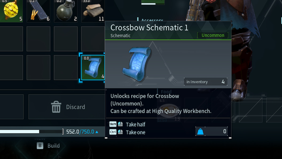 You might find “Old Bow Schematic 2” or “Metal Armor Schematic 3” while exploring the world, for example. The former would allow you to craft the Rare version of the Old Bow while the latter would let you craft the Epic version of the Metal Armor. These have higher stats and much higher ingredient costs that scale with their rarity. You’ll need a whopping 135 Ingots to craft tier 3 Metal Armor, for example, and that’s on top of 45 Leather, 22 Cloth, and 8 Ancient Civilization Parts.