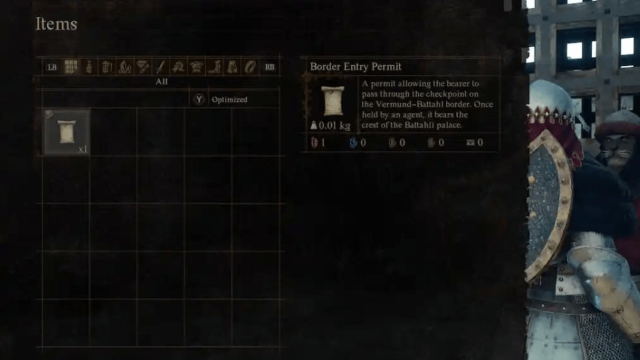 However, the type of Entry Permit you get will be determined by whether you have completed The Arisen’s Shadow quest and whether you let Bermudo go or not.