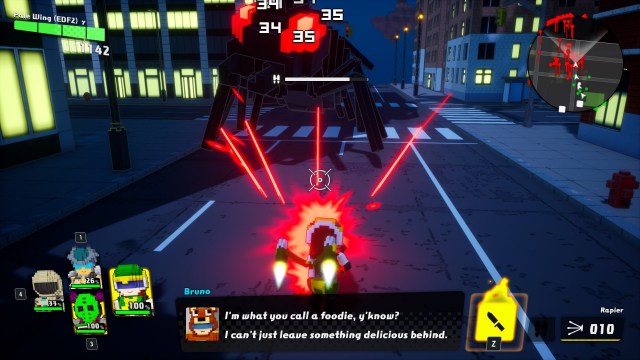But what makes Earth Defense Force: World Brothers stand out is the way it changes some of the core principles that we’re used to. In past games, players selected a class and outfitted them with two weapons. Both of these attributes are gone. Instead, you’ll have a squad made up of four characters. Each character can be swapped between on the fly, and is equipped with their own weapon, special ability, and super skill. Many of these characters are cute, voxel versions of the classes from past games, however. Many others trade in national stereotypes. One character is the Cowboy Brother, who wears a cowboy hat and comes with a revolver called the Spirit of Texas. Yup.