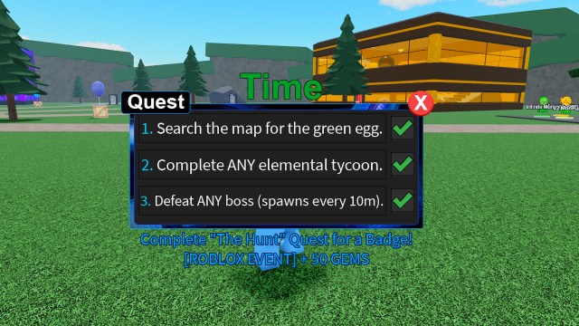 To earn the Badge in Mega Mansion Tycoon, all you need to do is progress through the tycoon. There are four button milestones that you need to buy, and upon reaching them, you’ll earn an Egg that you’ll have to take to the box outside your tycoon. Once it’s completed, you’ll earn the badge.