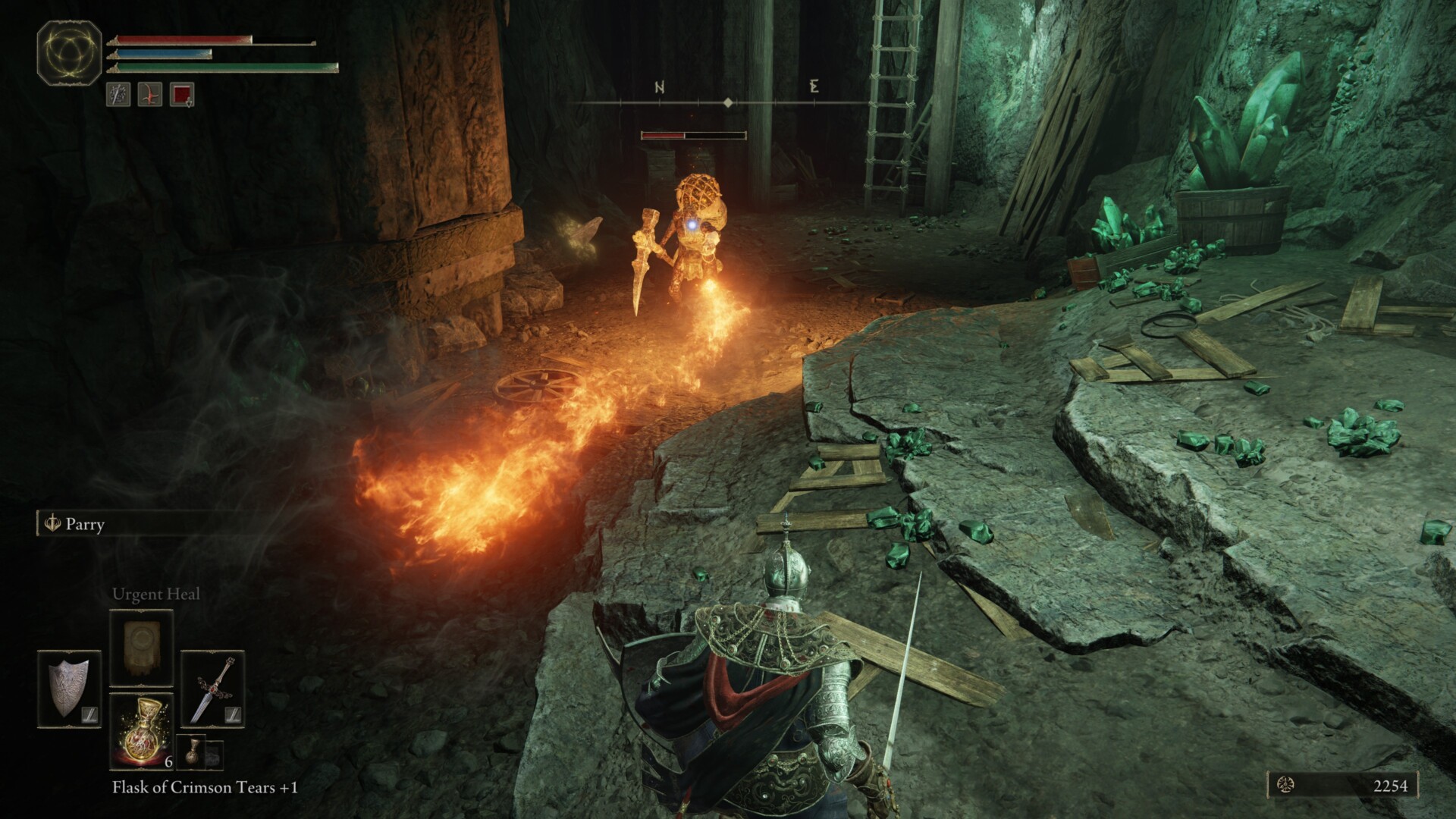However, our goal here is to climb the tower all the way to the top. From there, you can enter the mines. As cited in our Elden Ring dungeons guide, mines and tunnels tend to have crystalline or rock-infused mobs. That means blunt weapons will deal more damage to them. Likewise, make sure you have an item or spell that can cure poison in case you trigger traps.