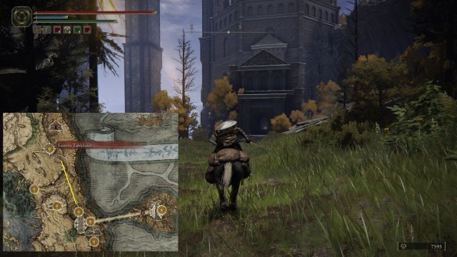 Carian Study Hall in Elden Ring can be found at the eastern section of Liurnia of the Lakes. The closest fast travel point is Eastern Tableland. You can follow the road leading down to the lower area to reach the tower’s entrance (as seen in the map below).