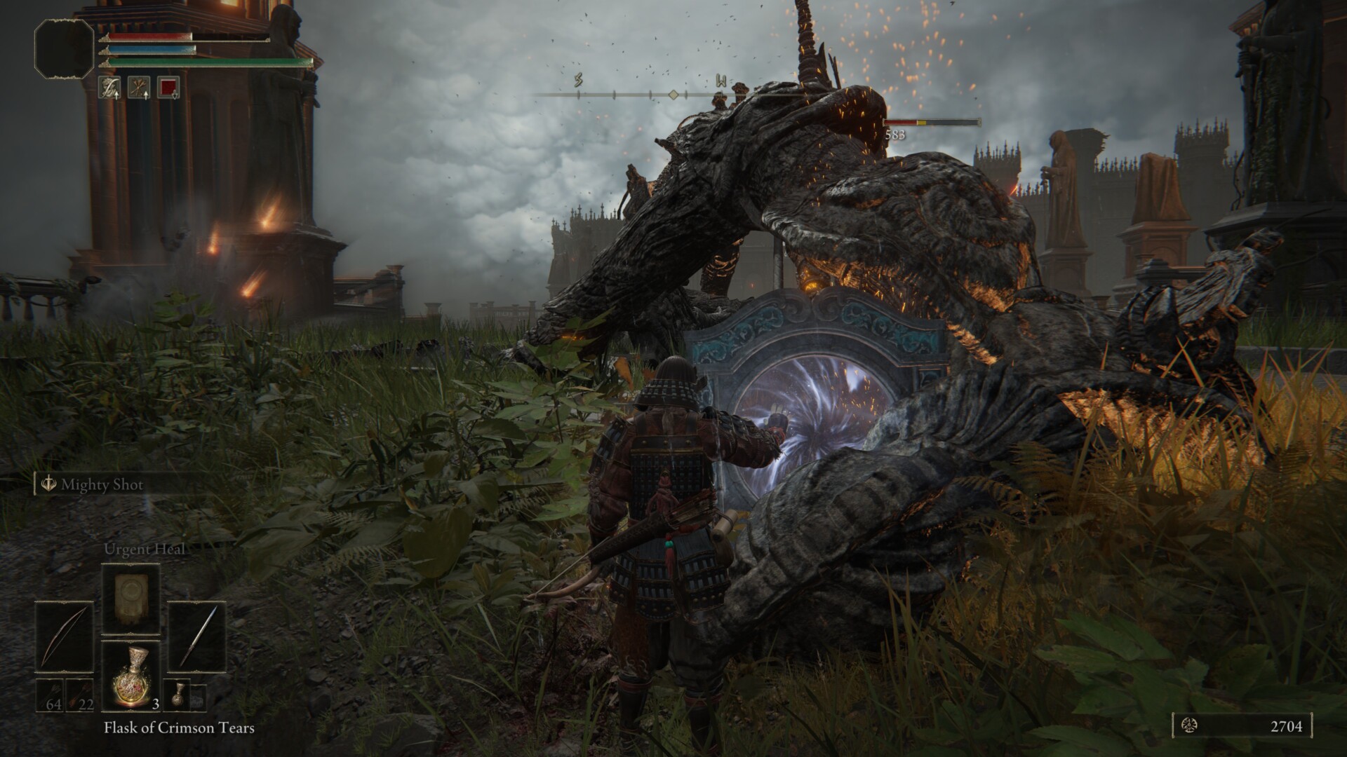- If you follow the steps leading down, you’ll find a chamber with a lever and some loot. Pulling the lever raises the main gate of Stormveil Castle.