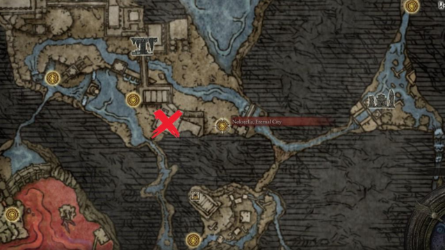 If you don’t yet have this Bell Bearing, you can find it in Nokstella, the Eternal City. Head to the location marked on the map below, defeat the group of Silver Tears guarding the chest, then open it up to find the Bell Bearing inside.