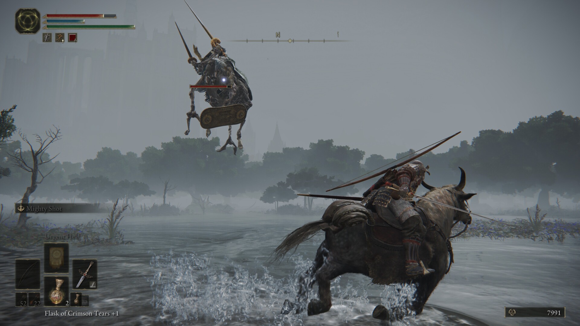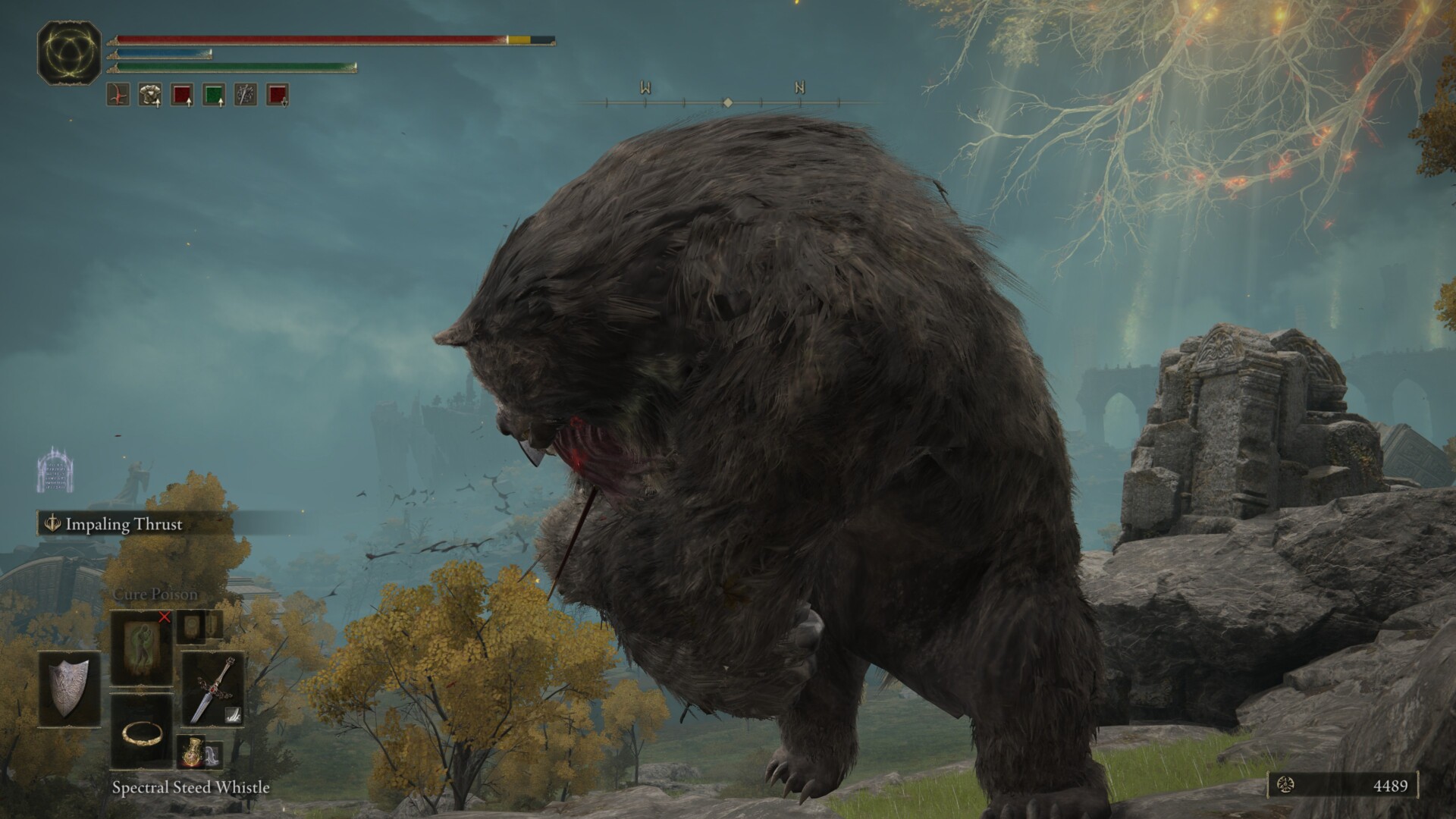 If you’re at a low level, then this can be very challenging. Much later, though, this minor encounter becomes trivial. Take out the beast to receive a Larval Tear in Elden Ring.