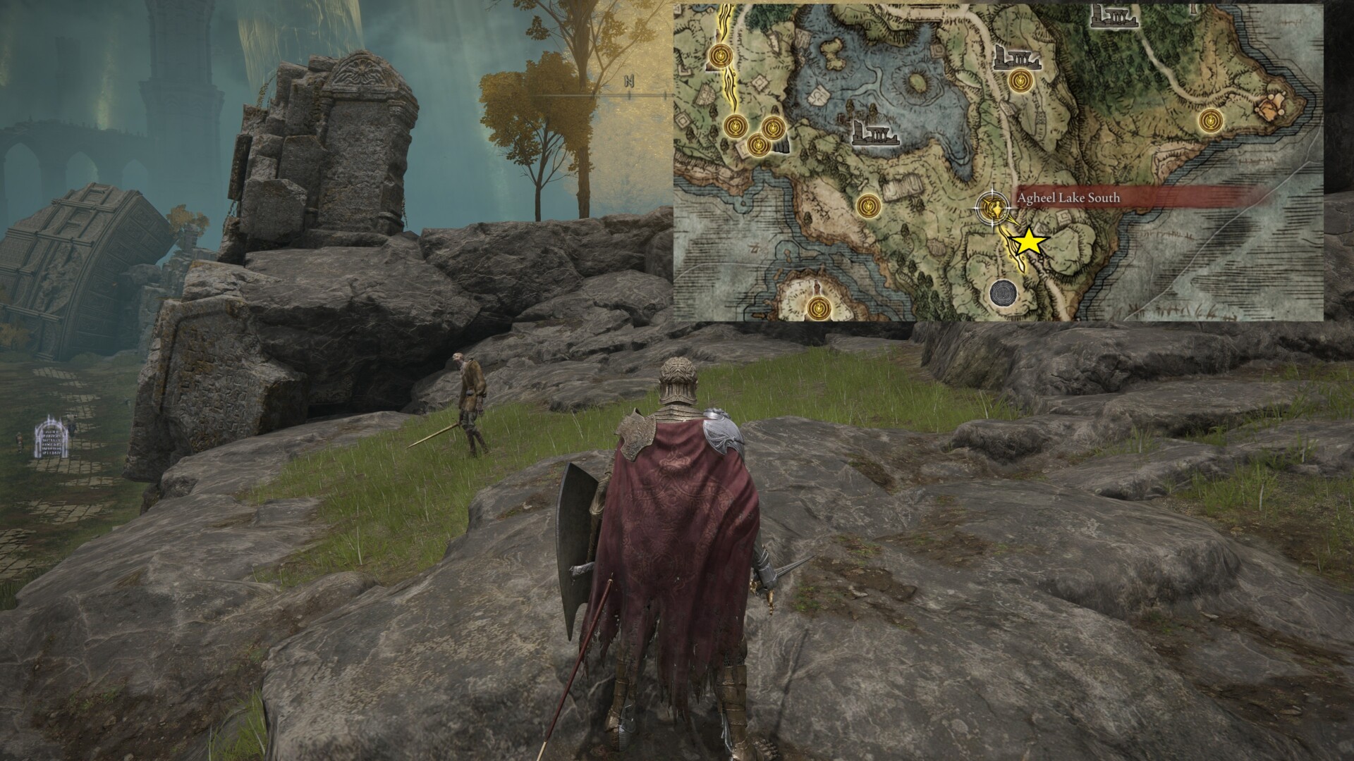This next one involves another transforming creature. In Liurnia of the Lakes, look for a domed gazebo due southeast of Rose Church. Near that structure, you’ll find a lone crayfish or lobster — I’m not really sure since I’m allergic to crustaceans. Watch out for its attacks, especially its Bubble Beam that has a fast casting time.