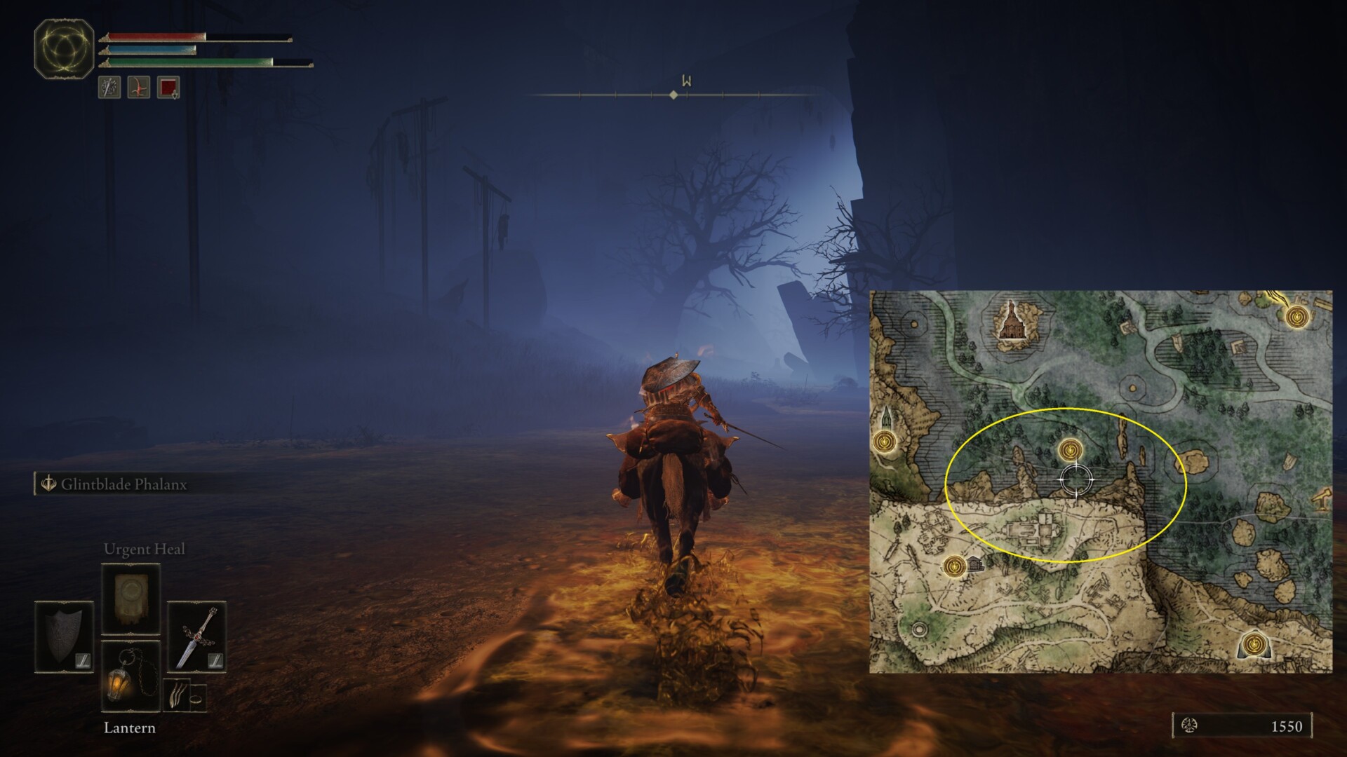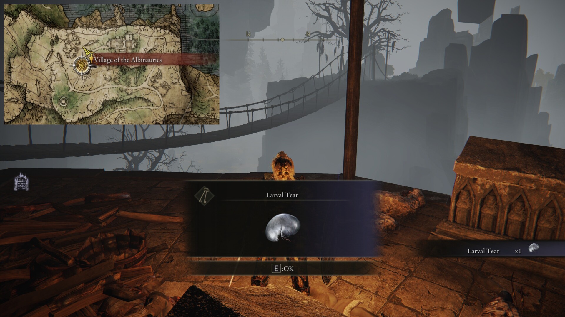 From the bonfire/Site of Grace, cross the nearby wooden bridge. The section here has a Larval Tear that’s just out in the open.
