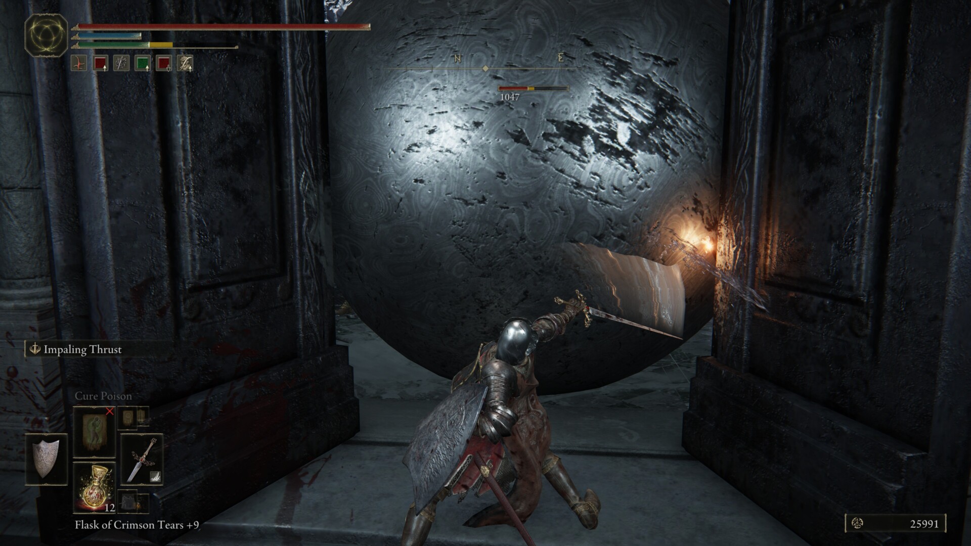 - As you continue to explore, you’ll come across a sub-zone called Night’s Sacred Ground. Progress further until you reach a chapel with a ball trap. Run to the exit and let the ball smash into the wall. You can destroy it to pick up a Larval Tear.