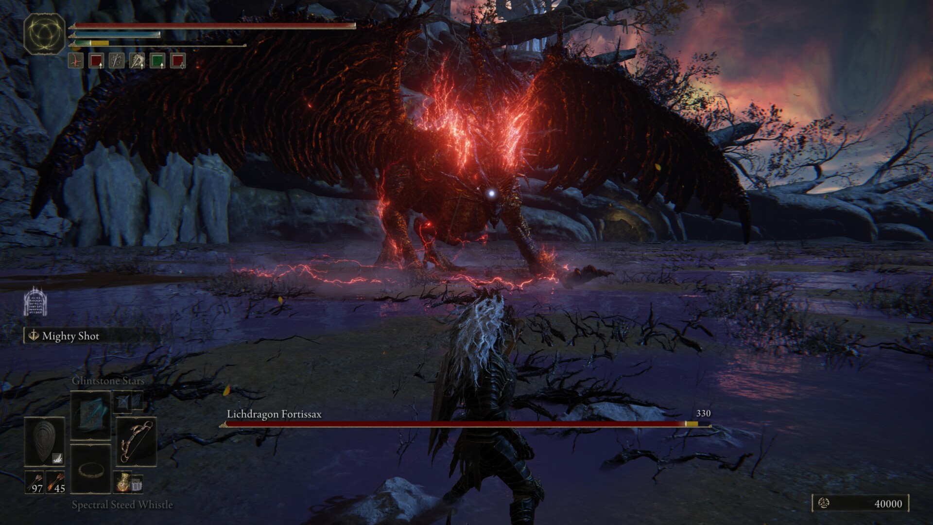Anyway, I think I only healed once while fighting Lichdragon Fortissax in Elden Ring (I got hit by the Flame Breath because I was getting greedy). This is a fairly straightforward fight, so just keep your distance to avoid triggering the boss’ melee sequences.