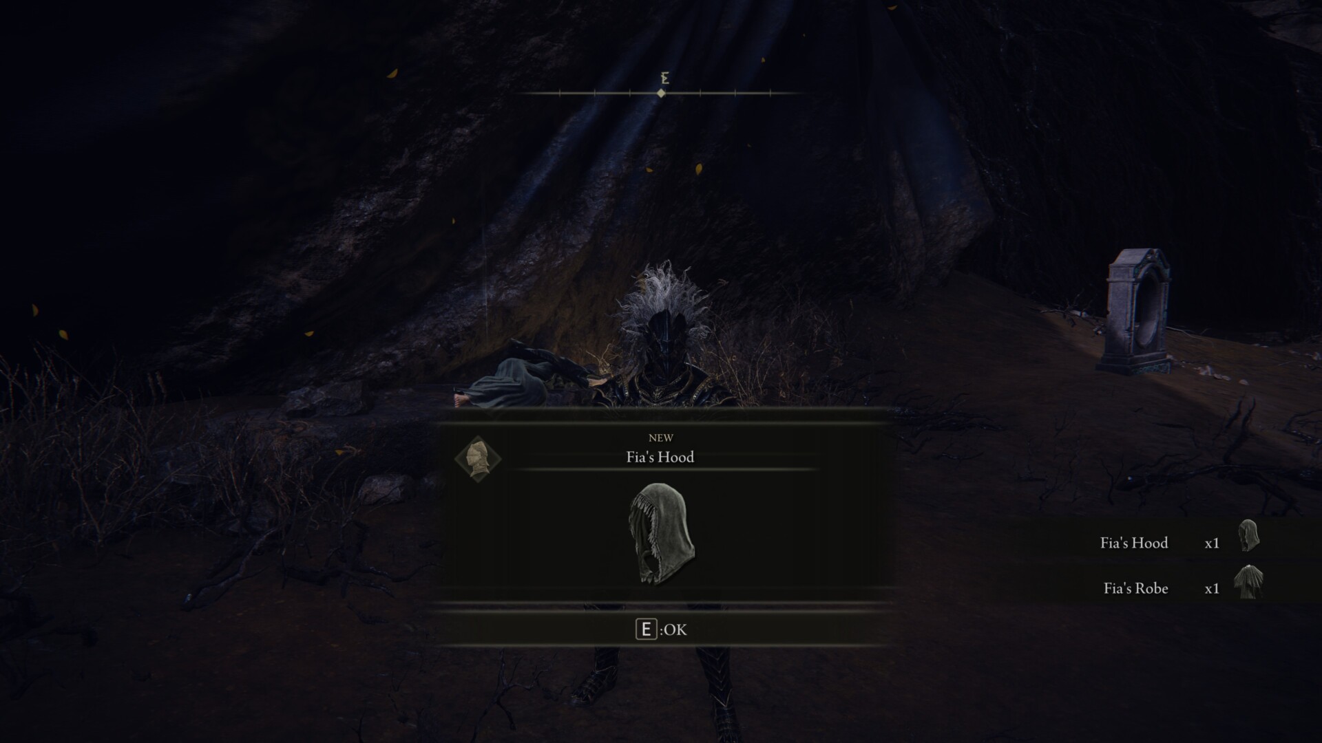 Also, make sure you check on Fia. Once you’ve killed Fortissax, you can pick up the Mending Rune of the Death Prince, a key item that’s related to the game’s ending. Likewise, if you rest at the Site of Grace, you can grab Fia’s Hood and Fia’s Robe as well (it looks like she’s dead).