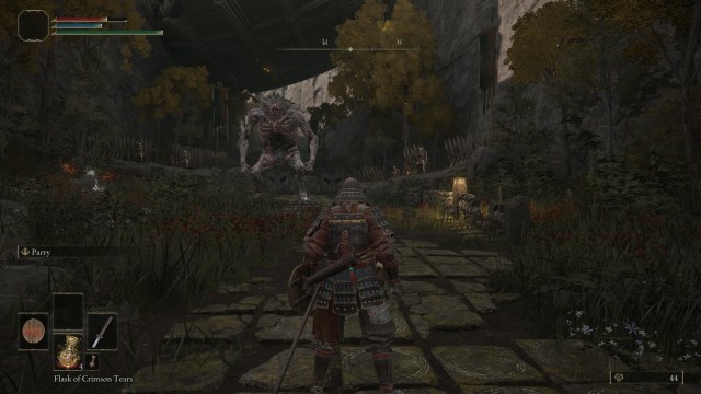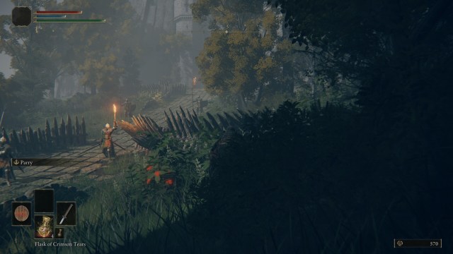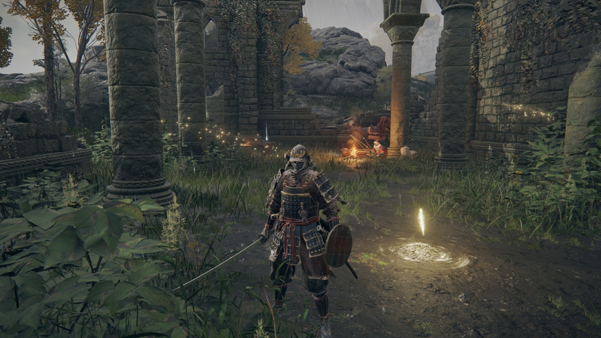 You’ll want to go through the Cave of Knowledge, which serves as the game’s tutorial area. From there, exit the Stranded Graveyard to see the wide landscape before you. The Tree Sentinel (which you can see in the featured image) is patrolling the road. Avoid it and go to the Church of Elleh. You’ll meet Merchant Kale who sells some weapons, ammo, and crafting recipes.