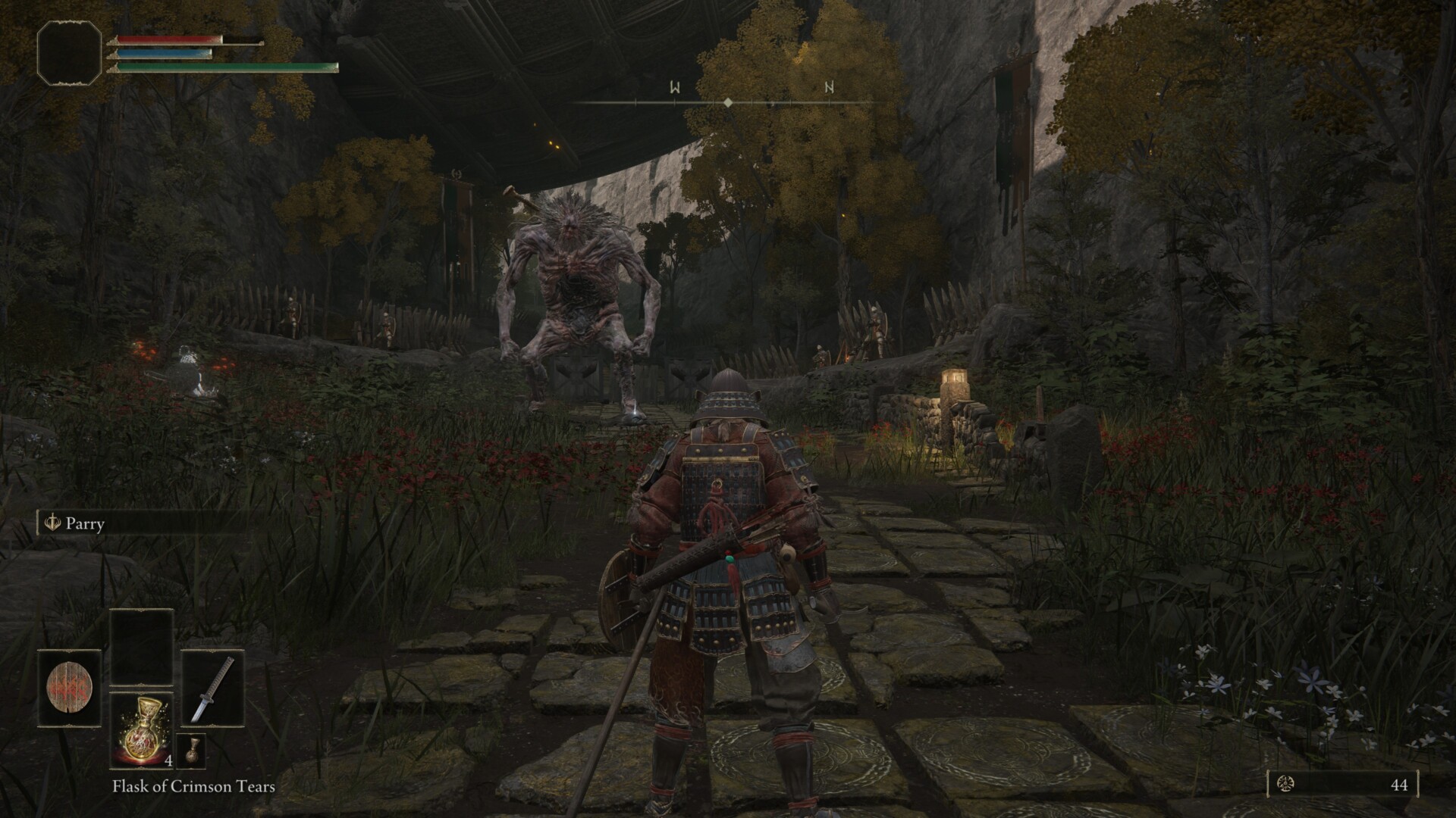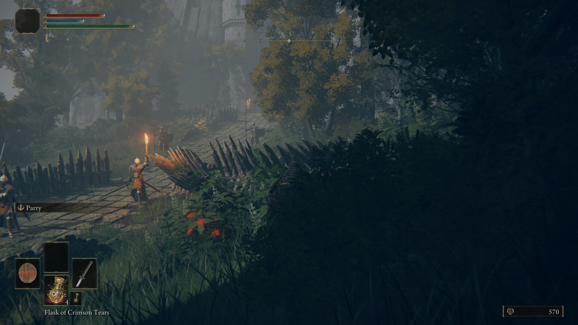 Note 2: If you look behind you to the east, you’ll see that the sloping path curves back to the Gatefront ramparts. There, you can defeat some mobs to get a ranged weapon, as well as the Arrow’s Reach Talisman.
