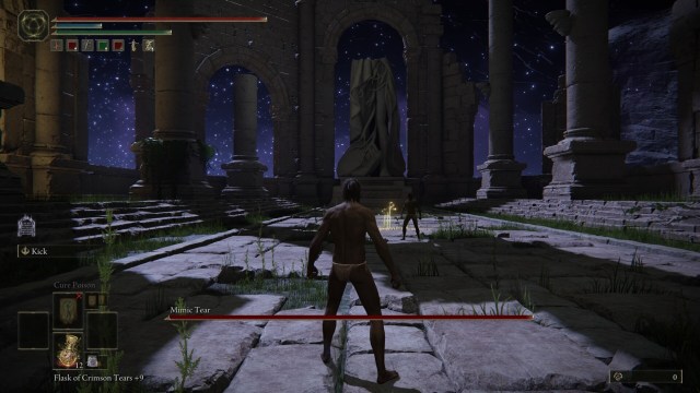 So, if you’re having a tough time fighting the Mimic Tear boss in Elden Ring, just cheese and go in naked. Then, after it’s fully formed, run around with the menu open so you can re-equip your gear. You may also summon Spirit Ashes to help distract it as you’re fixing your equipment.